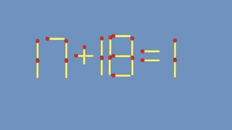 На картинке показано равенство «17+18=1». Очевидно, что в нем ошибка, причём глупейшая. Исправить её можно, но трогать разрешается только одну спичку.