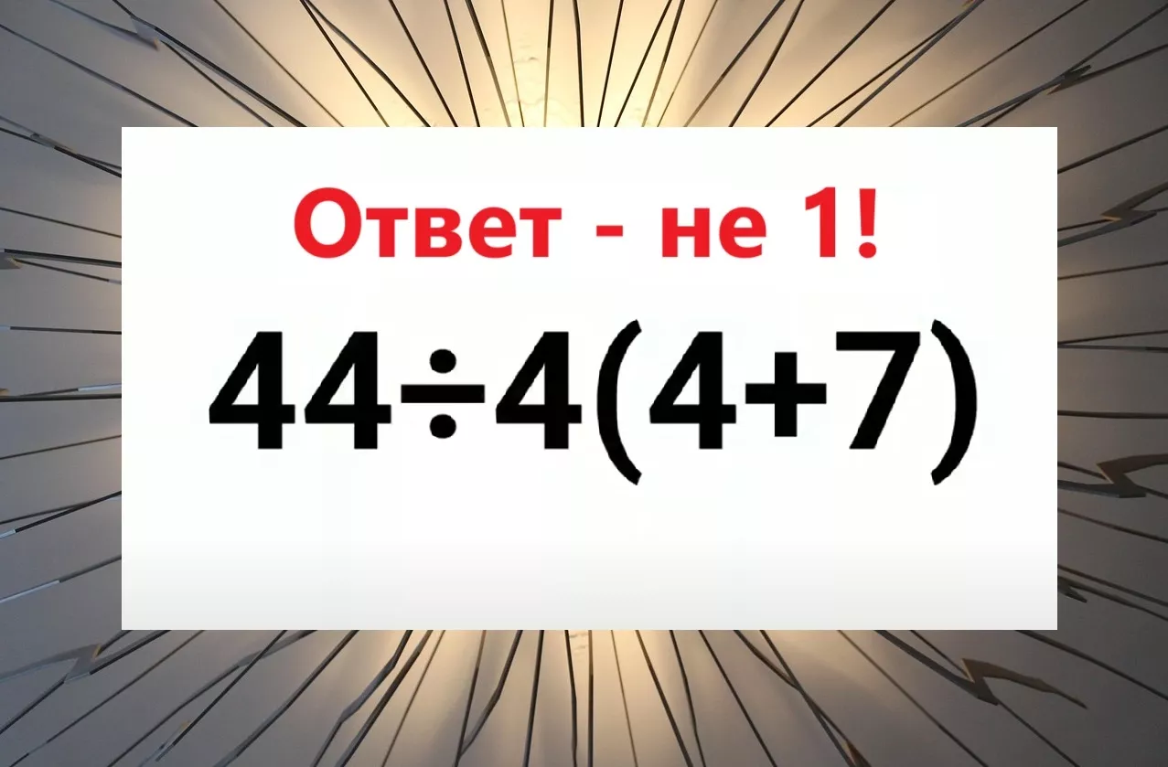 Один из таких примеров предлагают решить на время. На выполнение задания отводится всего 15 секунд, ведь на первый взгляд оно кажется элементарным. Нужно определить, чему равно выражение 44÷4(4+7).