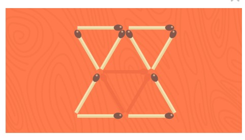 На изображении показана конструкция из множества треугольников. Условие звучит просто: необходимо поменять местами три спички так, чтобы в итоге осталось только три треугольника. Убирать спички нельзя, разрешено лишь их переставлять.