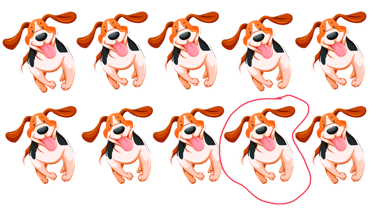 Но вот только одна из них отличается от остальных. Вот эту собаку вам и надо найти. Будьте внимательны и учитывайте, что та самая разница может быть спрятана там, куда вы меньше всего обращаете внимание.