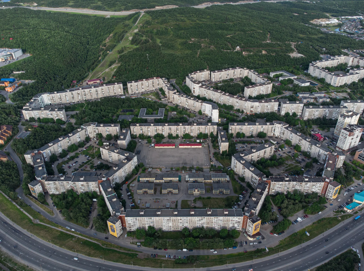 В Мурманске, в 305-м микрорайоне, расположен жилой комплекс длиной 1488 метров. В нём 2211 квартир, 52 подъезда и около 3,5 тысячи жителей — как в небольшом посёлке.