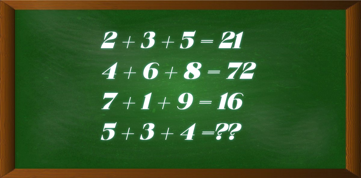 Дело в том, что эта задачка — не просто пример, а математический ребус. Для его разгадки нужно найти закономерность, которую уже применили в трёх первых примерах и только так разгадать ответ четвёртого.