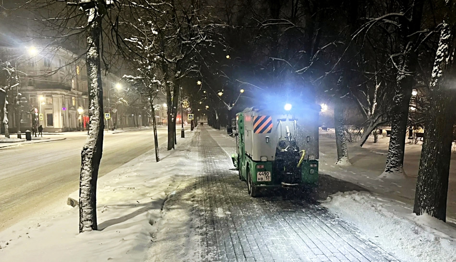 В Великом Новгороде коммунальщики и представители подрядных организаций всю ночь расчищали городские улицы от снега. Об этом на своей странице в соцсети «ВКонтакте» сообщил мэр Александр Розбаум.