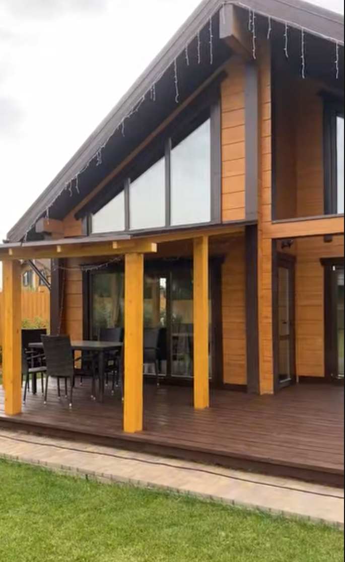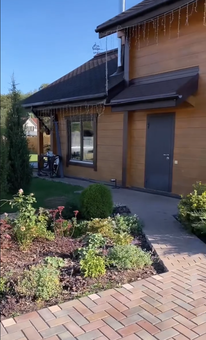 Совсем недавно над внешним видом дома поработал ландшафтный дизайнер. Появились декоративные кустарники и клумбы.