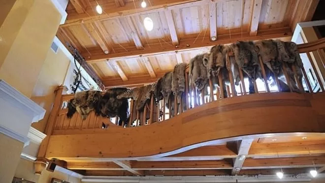 В гостиной красуются трофеи Михалкова, который является заядлым охотником.