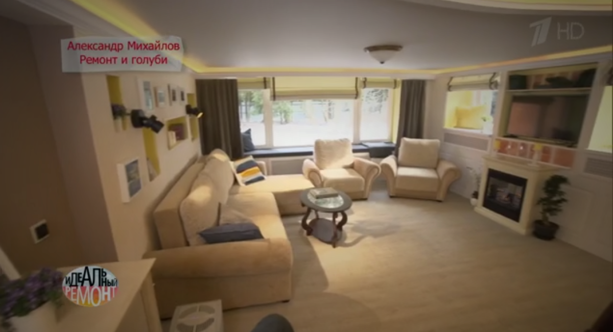 Строительство дома растянулось на года. В 2015 году Михайлов провёл масштабные изменения. Вместо гаража на первом этаже появилась жилая комната. Установили большой угловой диван.