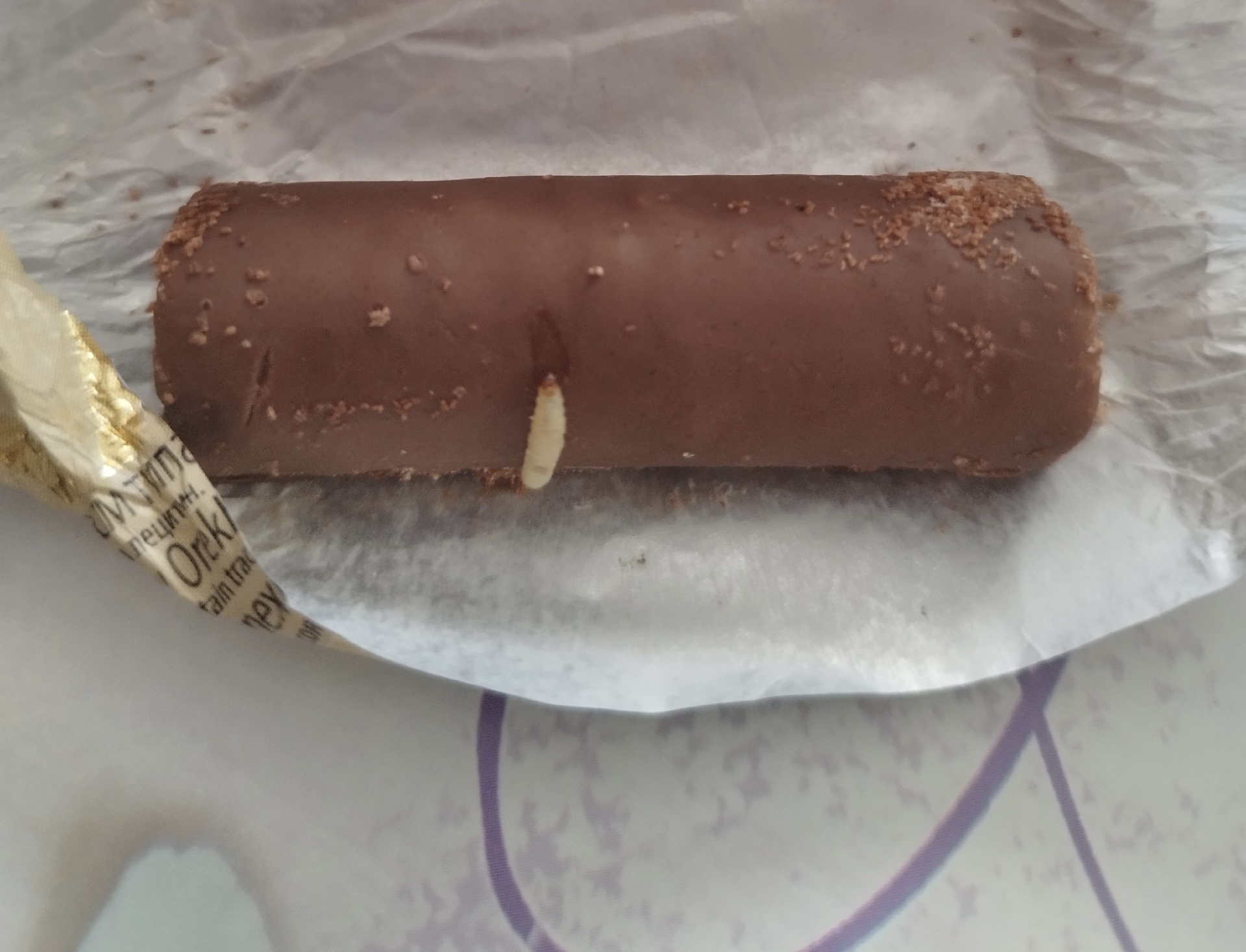 Жители Великого Новгорода обнаружили в конфете «Ореховая страна», купленной в местном «Магните», белого червяка