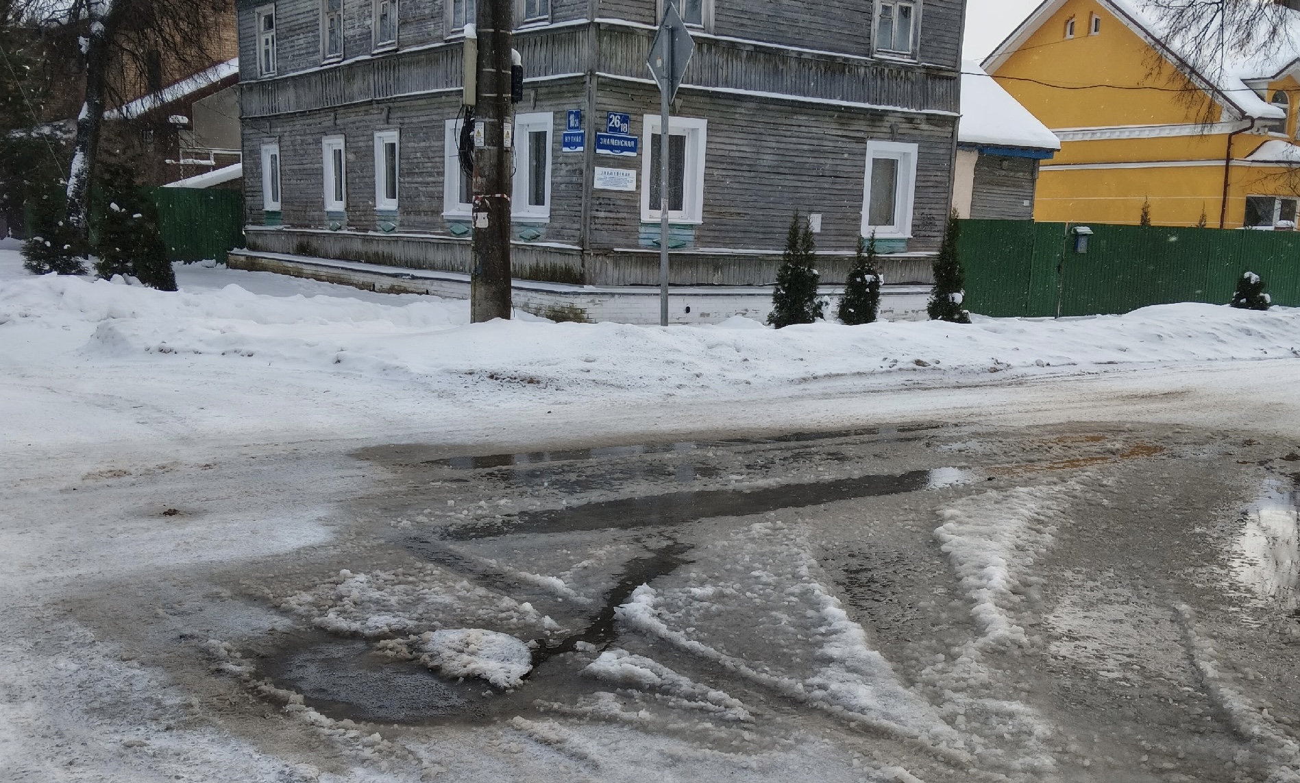 Когда ты и о проблеме, как активный гражданин сообщил, и трафик привлек, и личная ответственность не обременяет. А скользкость осталась. И на пересечении улиц Нутная и Знаменская тоже.