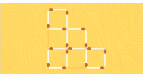 На изображении показана «лесенка» из квадратов. Задача — переместить всего две спички так, чтобы в итоге осталось четыре квадрата одинакового размера. Убирать элементы нельзя, их нужно лишь переставить.