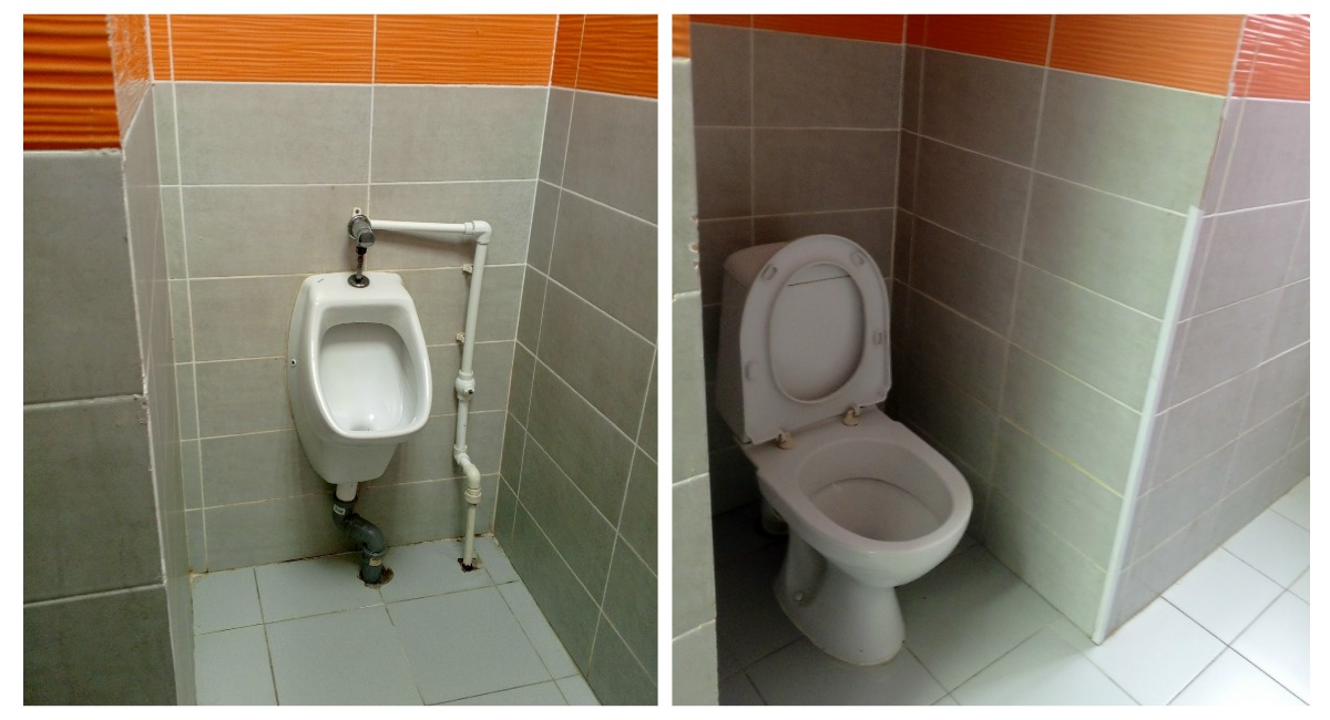 Все дело в том, что в санузлах не предусмотрены двери. На снимках видно, что унитазы и писсуары находятся практически на всеобщем обозрении.