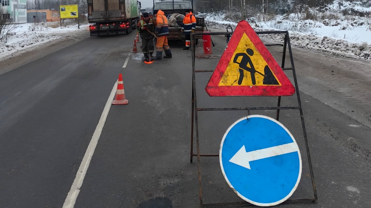На Лужском шоссе выполняют ямочный ремонт