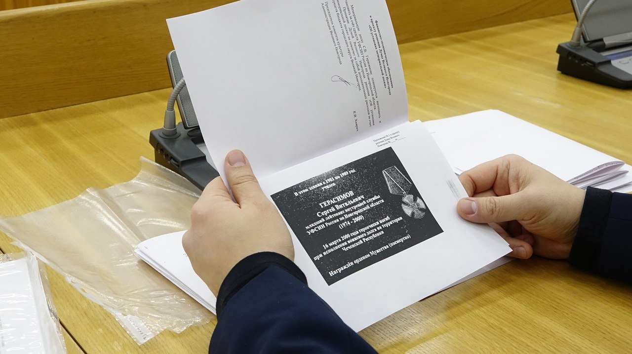 Фото: Дума Великого НовгородаДумскими комиссиями рассмотрен проект решения об установке мемориальной доски младшему лейтенанту внутренней службы Сергею Витальевичу Герасимову, сотруднику УФСИН России по Новгородской области, героически погибшему при исполнении служебного долга на территории Чеченской Республики в марте 2000 года.