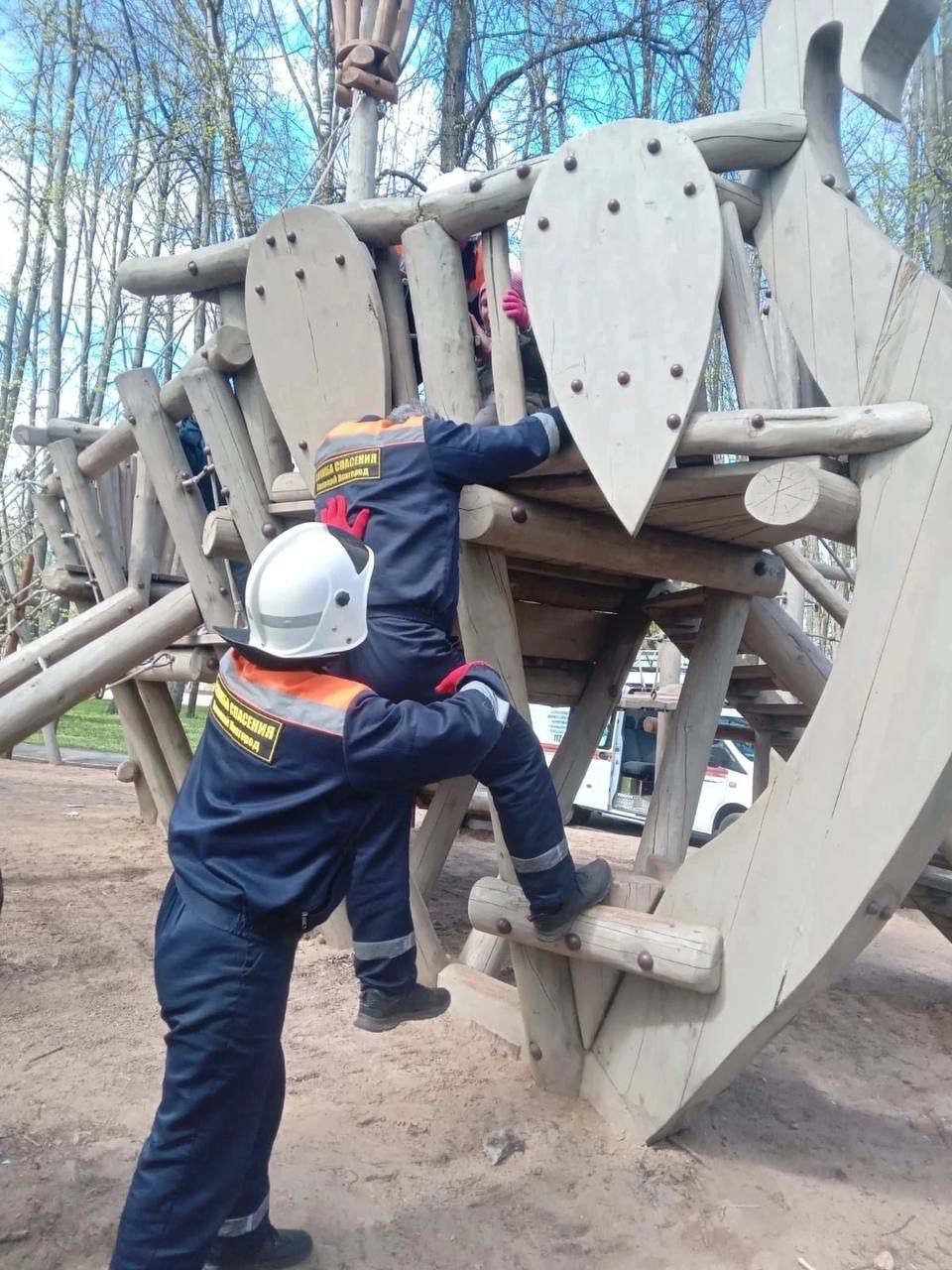 Вызывали спасателей: в новгородском Кремлевском парке ребенок застрял в игровом сооружении