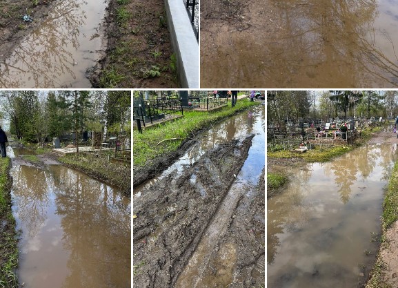 Людям не пройти до могил. Цветы не положить, жалко на стариков смотреть как они ползут. Или идти напрямую по могилам чужих. Везде грязь, мусор и вода. Пусть это будет обращением в прокуратуру и администрацию города, – говорится в сообщении.