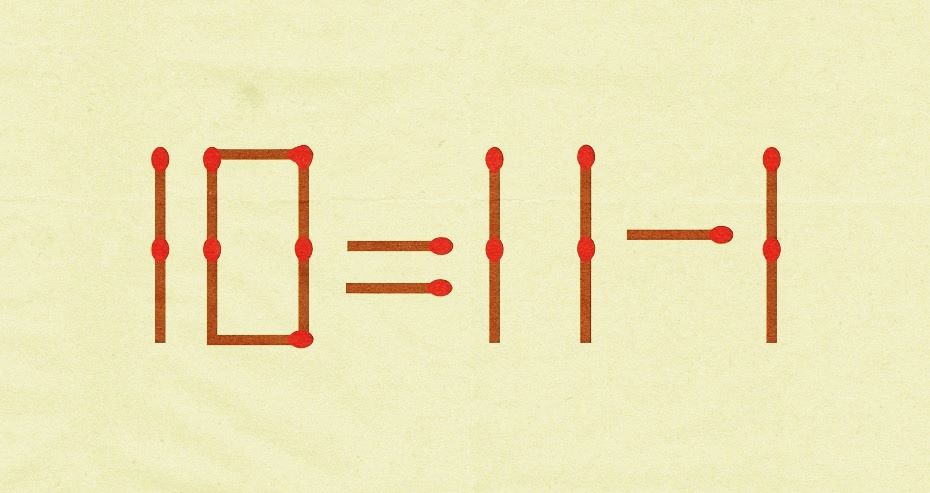 Попробуйте: перед вами уравнение 10–11=1. Нужно за 9 секунд переставить одну единственную спичку, чтобы выражение стало верным. Ответ — ниже. Не торопитесь подсматривать.