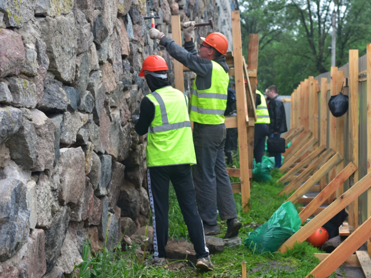 В Великом Новгороде начался ремонт стен вала Окольного города. Это один из важнейших памятников оборонительной архитектуры города.