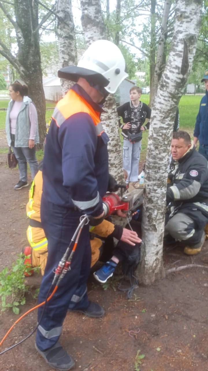 Спасали с помощью гидравлического аварийно-спасательного инструмента: в Великом Новгороде ребенок застрял между березами