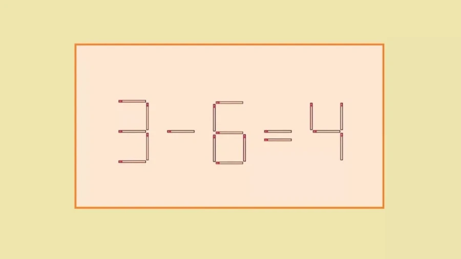Перед вами визуальная головоломка, где всё завязано на спичках: «3-6=4». На первый взгляд — неверно, но задача как раз в том, чтобы, не ломая и не убирая элементы, а лишь переместив одну спичку, добиться правильного результата.