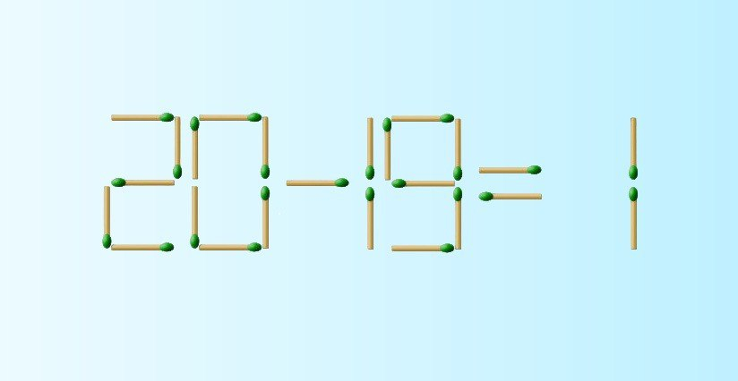 Решение тоже несложное — если его увидел. Одна спичка, убранная из цифры в ответе, и число «15» легко превращается в «19». В итоге получается «20−19=1». Формально — всё верно. А по факту — неплохая разминка для головы, не требующая ни тетради, ни интернета, ни даже особого настроения.
