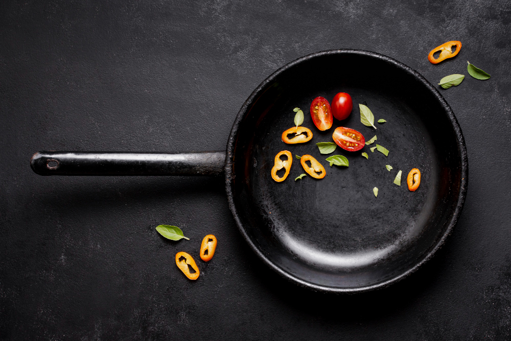 Если положить на сковороду сразу всё, что есть, — тоже ничего хорошего не выйдет. Температура падает, продукты отдают воду, и снова та же история. Лучше жарить в два захода, чем потом полдня отмывать стены и варить от запаха волосы.
