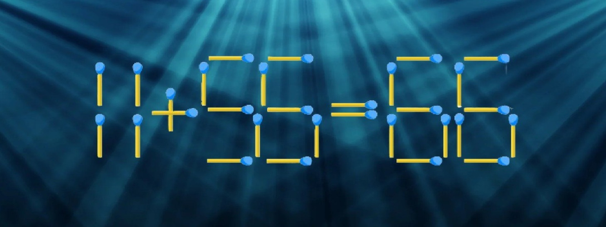 Один из таких вариантов — «11+55=58». При первом взгляде видно, что пример ошибочен. Условие задачи простое: ничего не убирать, цифры остаются на месте, разрешено лишь передвинуть одну спичку. Подход заключается в том, чтобы изменить форму «8», убрав одну черту и добавив её в «5». Тогда получится «66», и равенство становится верным.