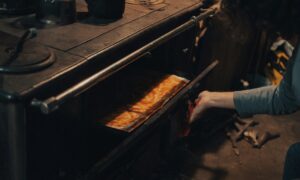 Жареные кабачки; 400 г. нарезать на кружочки толщиной 1 см. и обжарить на растительном масле с двух сторон. После этого на сковородке обжарить 30 секунд нарезанный чеснок и сливочное масло, туда выложить кабачки еще на 30 секунд.