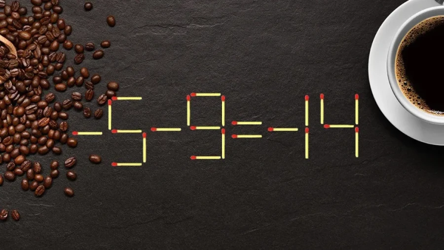 Если не терпится узнать ответ — он тоже рядом. Всё, что требуется: взять спичку из цифры 7 в ответе и превратить пятёрку в начало уравнения в отрицательное число. Получится: «–5–9=–14». Простая правка, а результат говорит сам за себя — сообразительность на высоте.