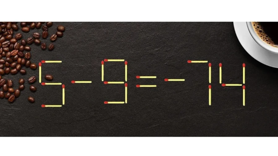 Посмотрите на иллюстрацию. Там изображено уравнение: «5–9=–74». Кажется, что оно составлено с ошибкой. И это действительно так. Но исправить всё можно буквально одним движением — достаточно передвинуть одну-единственную спичку. Справитесь?