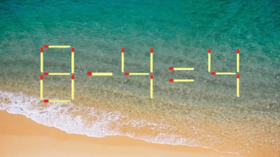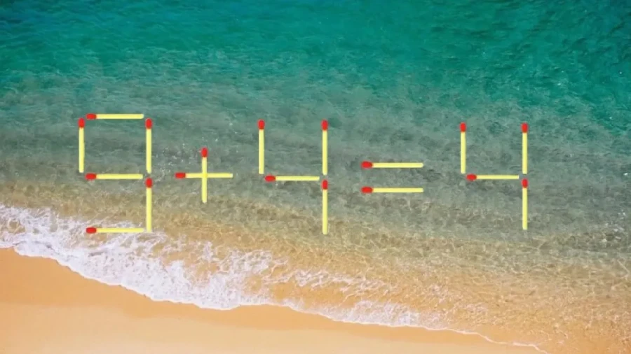 Пример — простая головоломка со спичками. На картинке видно: «9+4=4». Очевидно, что пример составлен неправильно. Но в этом и суть. Нужно всего одно действие — переставить одну спичку — чтобы равенство стало верным. Решение оказывается довольно наглядным: «8−4=4». Всё складывается.