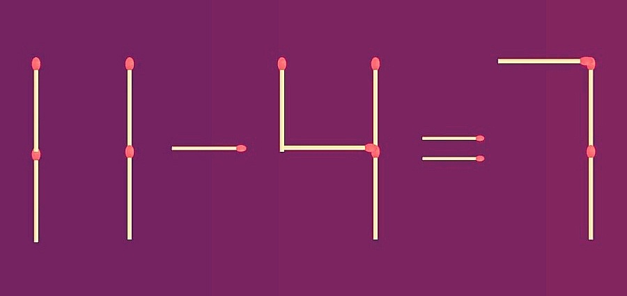 Хороший способ встряхнуть мышление — визуальные задачки. Те самые, где всё на виду, но решение будто прячется под носом. Предлагаем вам одну из них — быструю, но цепкую. Перед вами на картинке — странное равенство: «4–4=7». В чём подвох? Всё просто: здесь спряталась ошибка, и исправить её можно, лишь переставив одну-единственную спичку.