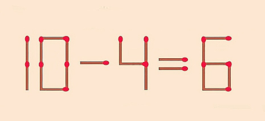 Если решение ускользает, подсказка проста, но элегантна: измените первую цифру — шестёрку — в «0». Получится «10–4=6» — и всё складывается.
