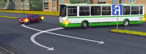 Представьте, что есть 2 автомобиля, и они одновременно начинают разворот, но кто кому должен уступить дорогу? Вот о чем вас спрашивает инструктор.