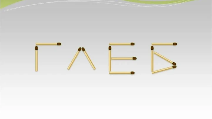 Сегодня мы предлагаем вам кое-что новое. Посмотрите на составленное из спичек мужское имя — Глеб. Вам нужно превратить его в другое мужское имя, переставив всего две спички.