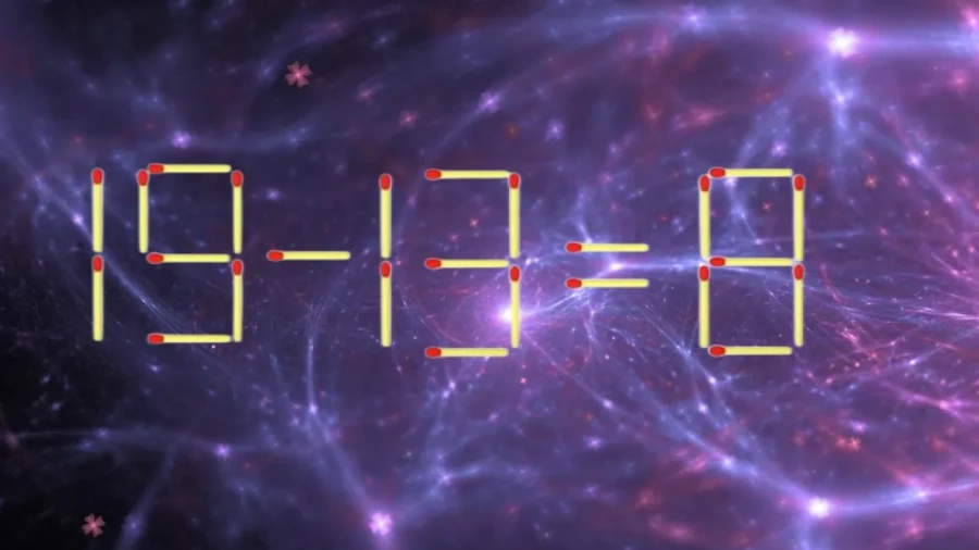 Смотрите сами — вот задачка. На иллюстрации записано: «19−13=8». Но в этом выражении ошибка. Её специально допустили, чтобы вы попробовали найти, как её исправить, имея право двинуть только одну спичку.
