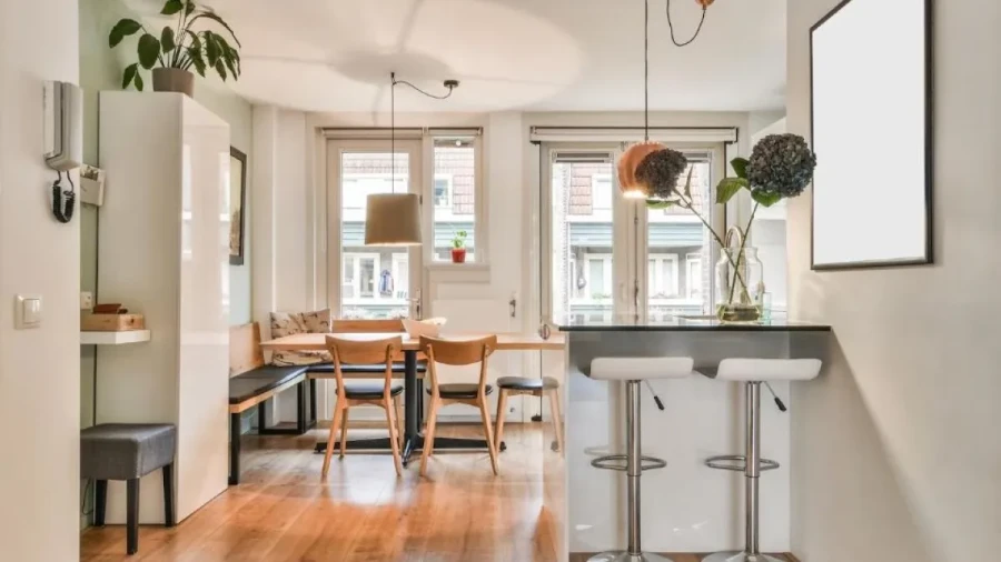 Картины и скульптуры встроены в жилую среду, размещены в жилых зонах, а не выделены отдельно. Освещение точечное. Пространство не делилось на отдельные комнаты, акцент сделан на открытость.