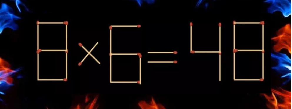 Что ж, если знак менять нельзя, остаётся поработать с цифрами. Немного воображения — и одна спичка с цифры «8» уходит, превращая её в «6». Тогда и результат легко поддаётся корректировке. Новая запись «8×6=48» уже не вызывает вопросов — всё сошлось, и проверка не требуется.