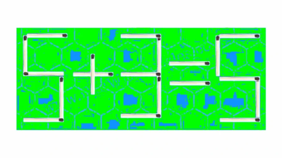 Тонкость в том, что менять нужно не только цифры, но и знаки между ними. Одной спичкой стоит изменить плюс — превратить его в минус. Вторая — ключ к преображению: одна из пятёрок становится шестеркой, а другая — превращается в тройку. Финальный результат: 6−3=3.