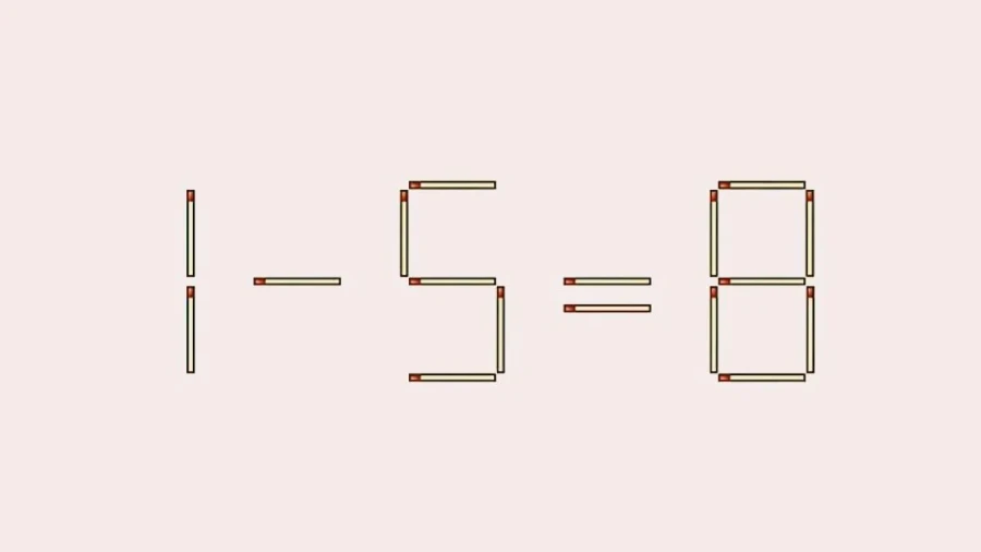 На первый взгляд задача кажется абсурдной: перед вами изображение, где спичками выложено уравнение 1 — 5 = 8. Очевидно, что что-то здесь не так. Но стоит включить воображение и взглянуть на спички не как на цифры, а как на линии, — и решение становится ближе.