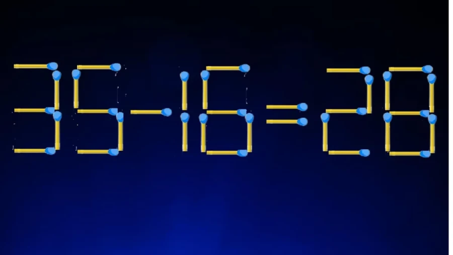 Один из таких примеров — классическая спичечная головоломка с записью «35-16=28». На первый взгляд — ошибка, но суть в том, чтобы, изменив расположение спичек, добиться правильного равенства. В данном случае нужно из цифры «8» в ответе убрать одну спичку, а в числе «5» — перестроить её так, чтобы получилось «6». В итоге перед вами окажется верная запись: «36-16=20».