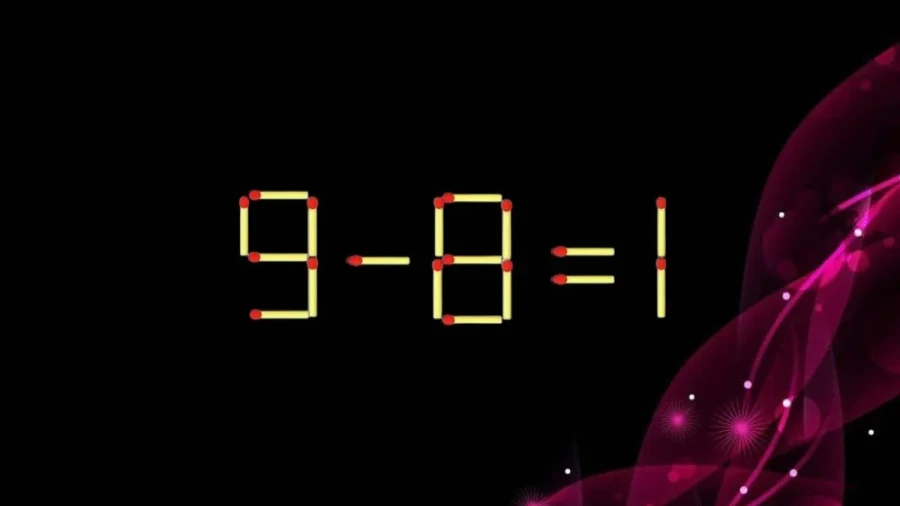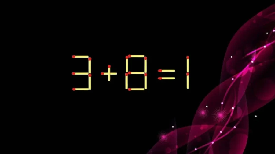 Вот пример. На рисунке уравнение: «3+8=1». Что-то в нём не так, верно? Попробуйте найти способ исправить ошибку, но при этом разрешается сдвинуть только одну спичку. Подсказка: если плюс превратить в минус, а из «3» сделать «9», уравнение станет правильным — «9−8=1».