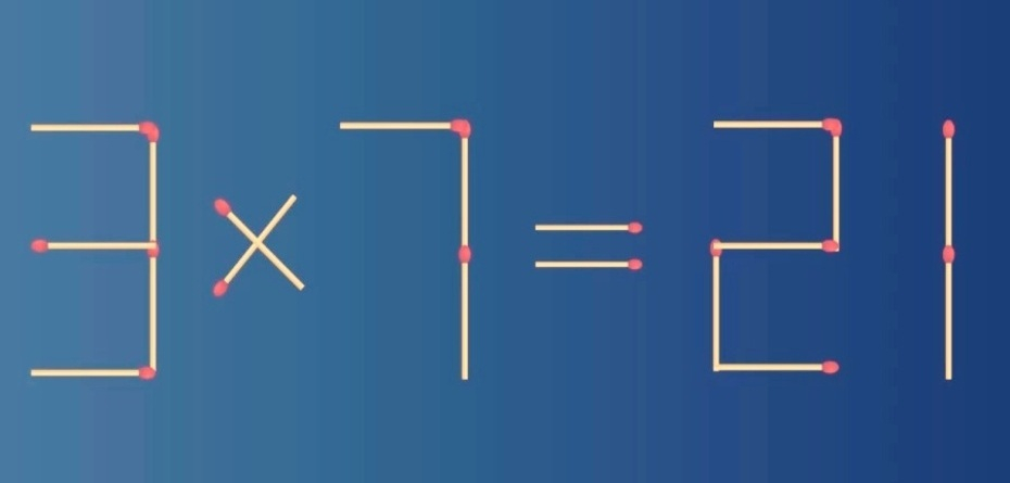 Такие задачки видели. Показывают что-то вроде примера, а он — неправильный. Типа «5×1=27». И говорят: двигай две спички, но ничего не убирай. Всё. Придумай, как из бреда сделать норму.