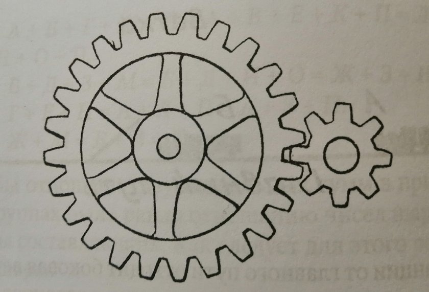 Маленькая шестеренка оснащена 8 зубцами. Шестеренка сцеплена с колесом, у которого 24 зубца. Колесо стоит на месте, в то время как шестеренка движется по кругу. Надо узнать количество оборотов шестеренки вокруг своей оси пока она сделает полный оборот вокруг колеса? Еще раз, внимательно читаем условие. Для наглядности всего процесса механизма ниже прилагается фото.