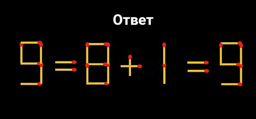 Внимательно посмотрите на изображение. На нем представлено неверное выражение. Ваша задача найти и переложить одну спичку таким образом, чтобы пример стал правильным.