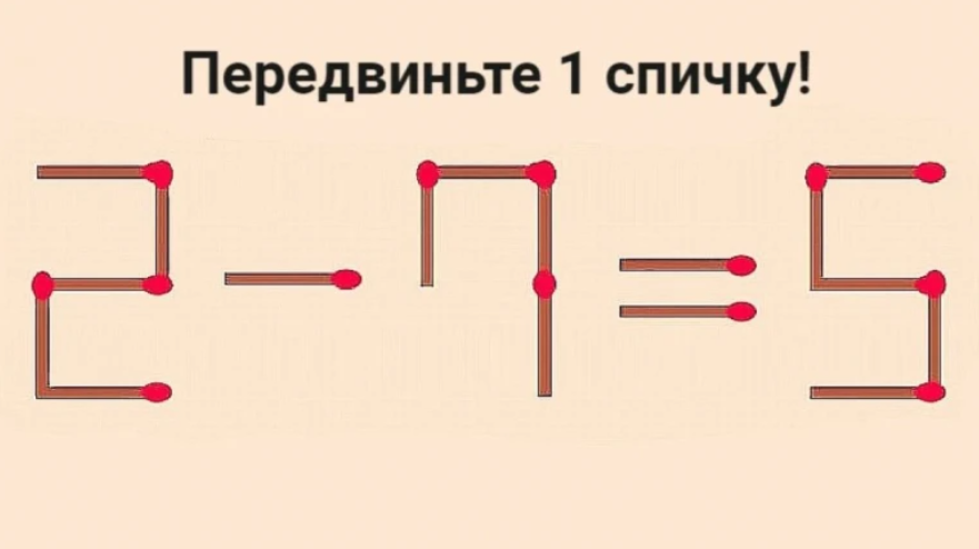 Справились? Если нет, то попробуйте дать себе немного больше времени. А ведь все максимально просто. Нужно переместить одну спичку из знака «=» в знак «-», чтобы они поменялись местами.