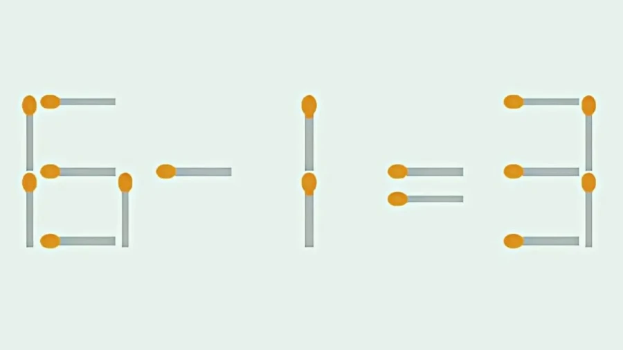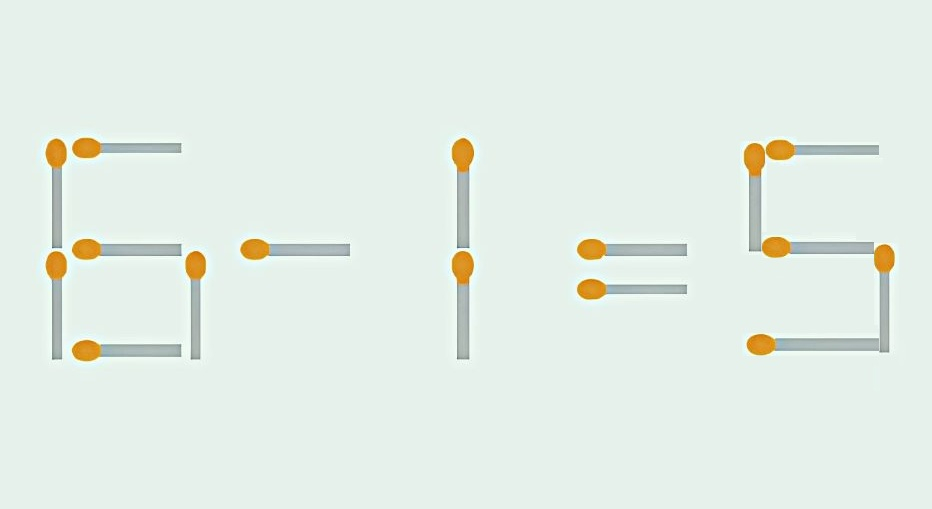 Пример — простая задача со спичками. На изображении записано выражение: «6 — 1 = 3». Оно неверное. Условие — изменить только одну палочку так, чтобы получился правильный вариант.