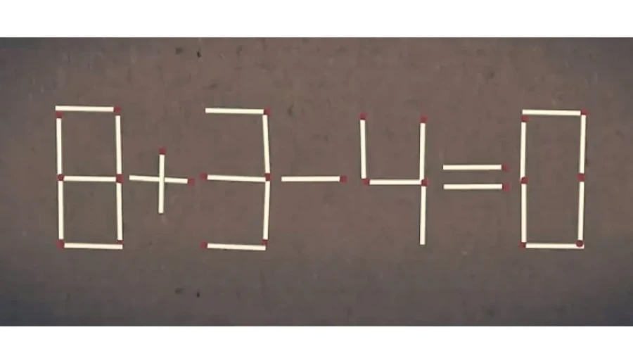 На картинке показано выражение: «8 + 3 — 4 = 0». В нём ошибка. Допускается одно действие — переместить одну палочку.