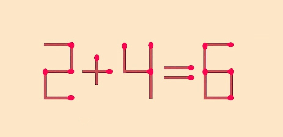 Если не получается, можно глянуть. Берётся одна палка из последней цифры. Её ставят так, чтобы знак поменялся. Был минус, стал плюс. Тогда получается: «2+4=6».