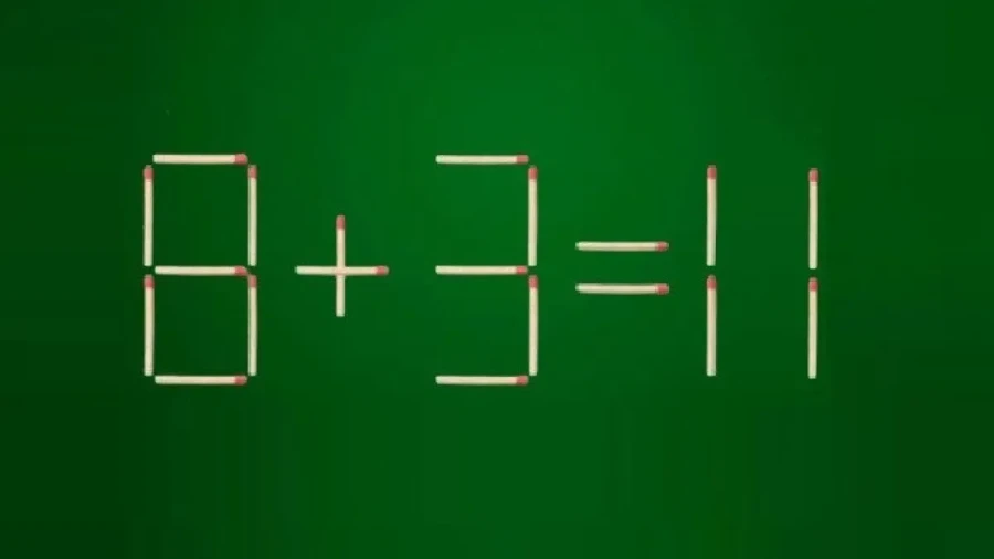 У девятки можно убрать вертикальный элемент — получится тройка. Эту спичку стоит просто передвинуть к знаку «минус», и он превратится в «плюс». Всё, что остаётся — посмотреть на итог: «8+3=11».