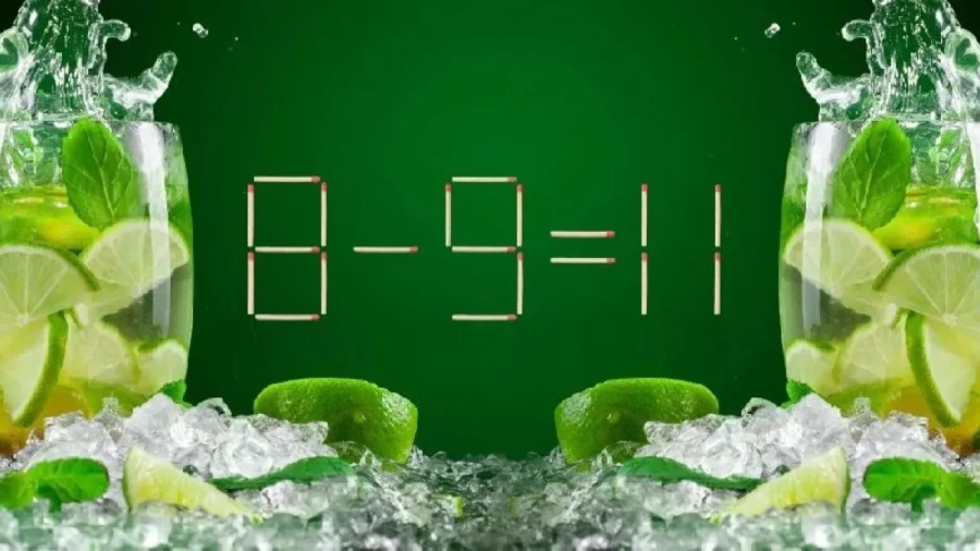 На фото — странное равенство: «8-9=11». Понятно, что не сходится. Но если приглядеться, становится ясно: ошибка не в арифметике, а в том, как составлены цифры. Стоит только немного подправить одну спичку.