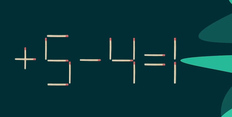 На иллюстрации показан пример: «-5+4=1». Видно, что в записи есть ошибка. Но достаточно сдвинуть всего одну спичку — и равенство станет верным. Удастся ли вам догадаться, что именно нужно изменить?